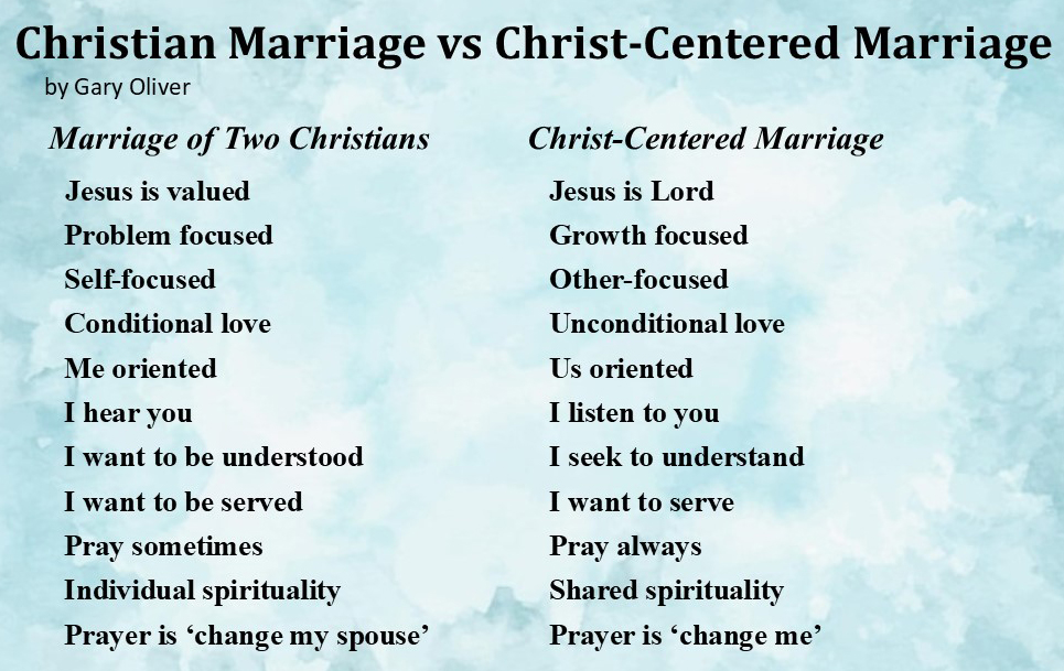 The basis of a Christian Marriage is the person of Jesus Christ. People must understand who Jesus is before they can understand their place in the world, in a family, or in the marriage relationship.